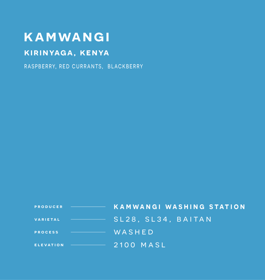 Kamwangi is one of three washing stations managed by the Ngariama Farmers Coop. Established in 1975, Kamwangi is strategically located in the rich volcanic highlands of Kirinyaga County. Its proximity to Mt. Kenya provides nutrient dense soils & stable weather that shape its distinctive coffee character.